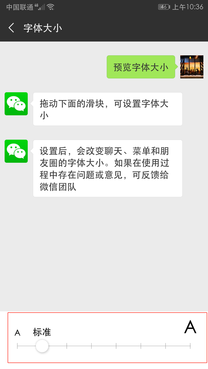 往右滑动就可以将字体放大了,如果需要调小字体,往左滑动即可。这就是调整微信字体大小的方法,快教给家里的长辈吧!