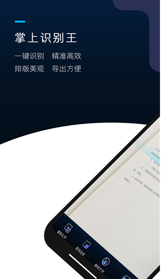 掌上识别王:这款软件具有快速截图识别、表格识别、外语识别等多种识别功能,其快速截图识别功能可以帮助用户快速截图并轻松识别提取出图片中的文字,文字识别准确率高达95%,基本不会出现文字识别错误的情况,能大大提高文字转换效率。而且,用户还可以通过在手机上安装这款工具的APP,实现随时随地识别扫描文字的操作。