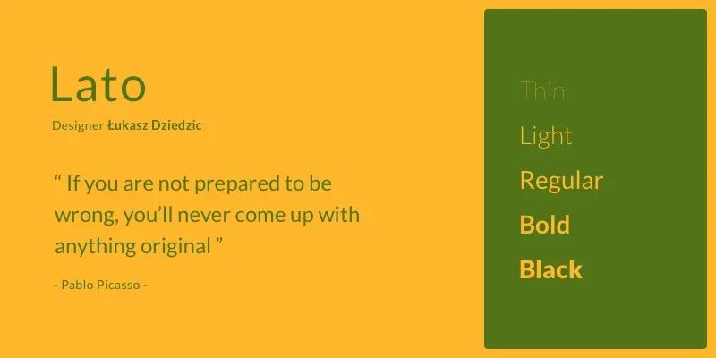 Lato的字母采用了半圆形的细节,既传达了温暖,又不失专业的本质。很多严肃的科技类、金融类网站都会选用Lato作为他们的首选字体, 以体现企业既认真严谨又平易近人的品牌形象。