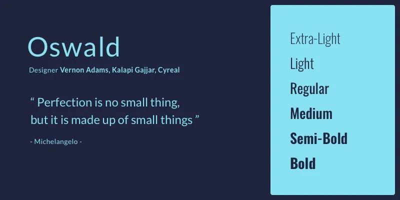 通过为数字时代重新诠释经典的哥特字体风格, Oswald字体创造了一种多功能字体。提供六种重量,Oswald适合各种极简主义设计应用,从密集的正文到通风的标题。