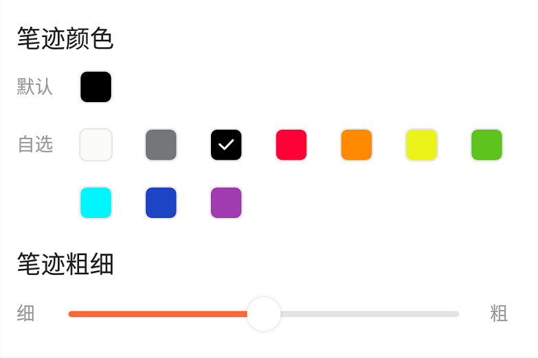 点击手写设置后,就可以根据自己的使用习惯设置字体的颜色和样式。如下图: