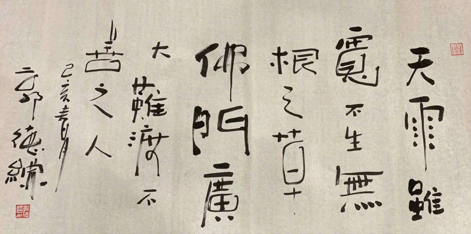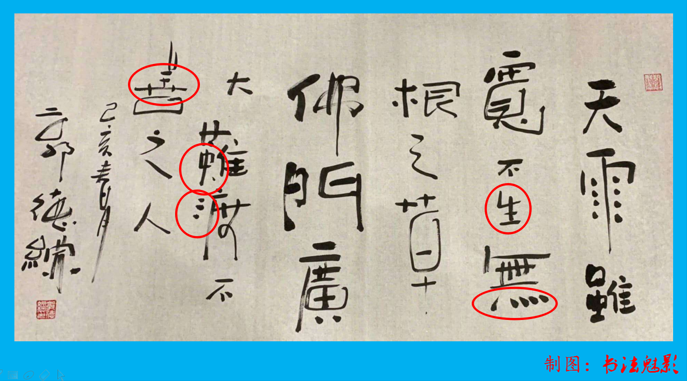这些用笔应该是有篆书的基础,说明郭德纲早年学过篆书,因此才会出现这么厚实的中锋用笔。小编在网上查了查,正实了我的判断。