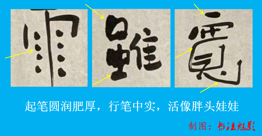 这种圆润敦厚的用笔是郭德纲风格形成的基础,也是形成其胖胖乎乎的形象基础,想必这与其自身圆润的身材也有着牵丝万缕的联系吧。
