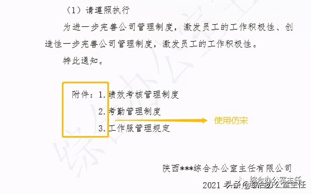 这里要特别注意一个细节,附件说明处不按照以上格式规定,使用的是仿宋字体。