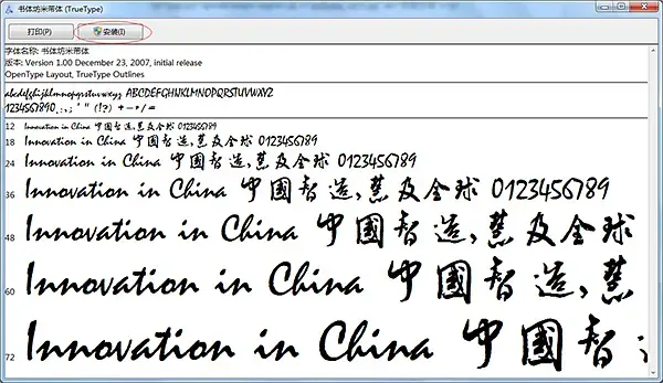 下载我们想要的字体,解压压缩包,双击打开下载好的字体,弹出的对话框中单击“安装”按钮即可。