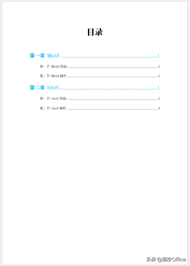 一路点击确定,就生成了目录。第一级目录和第二级目录的文字迥然不同。