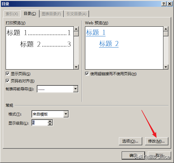 在进一步打开的窗口中,选择上方的级别样式,点击修改。