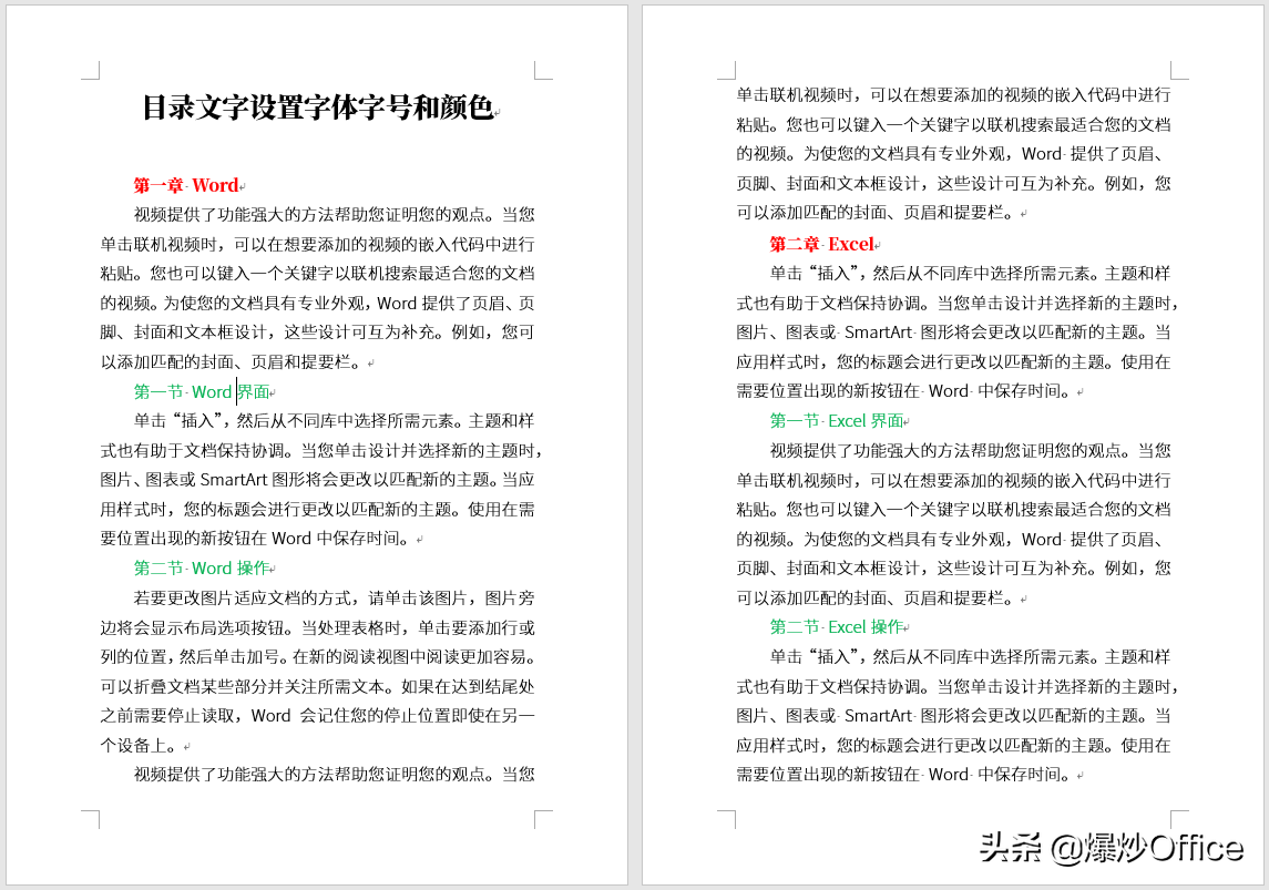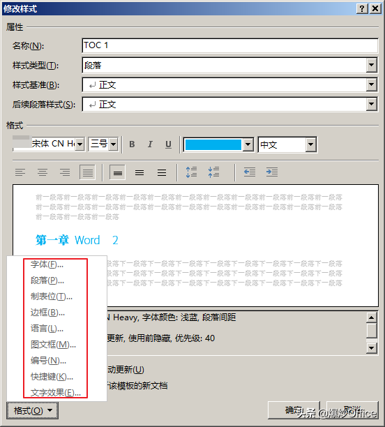 Word技巧:设置目录字体。