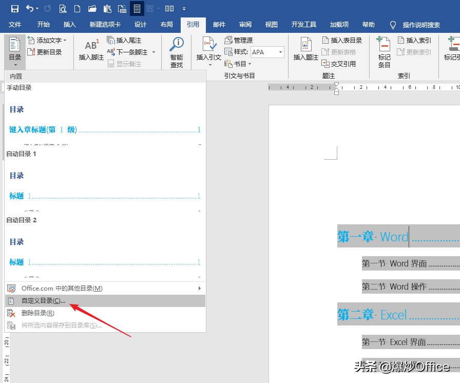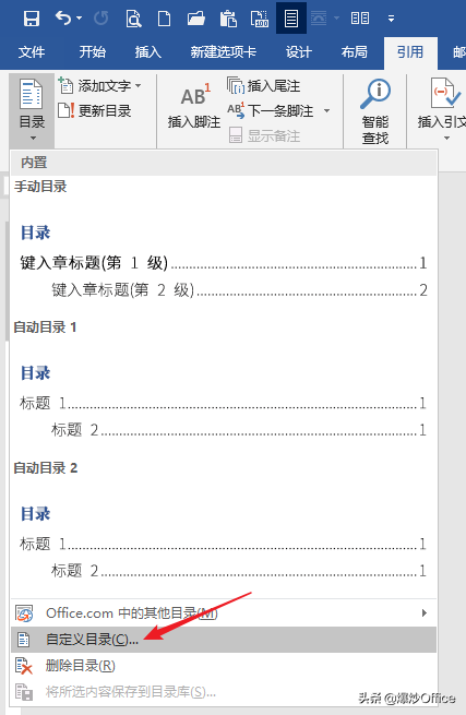 如果觉得效果不满意,可以将光标置于目录中,再点击自定义目录。再来按上述步骤进行进一步设置。