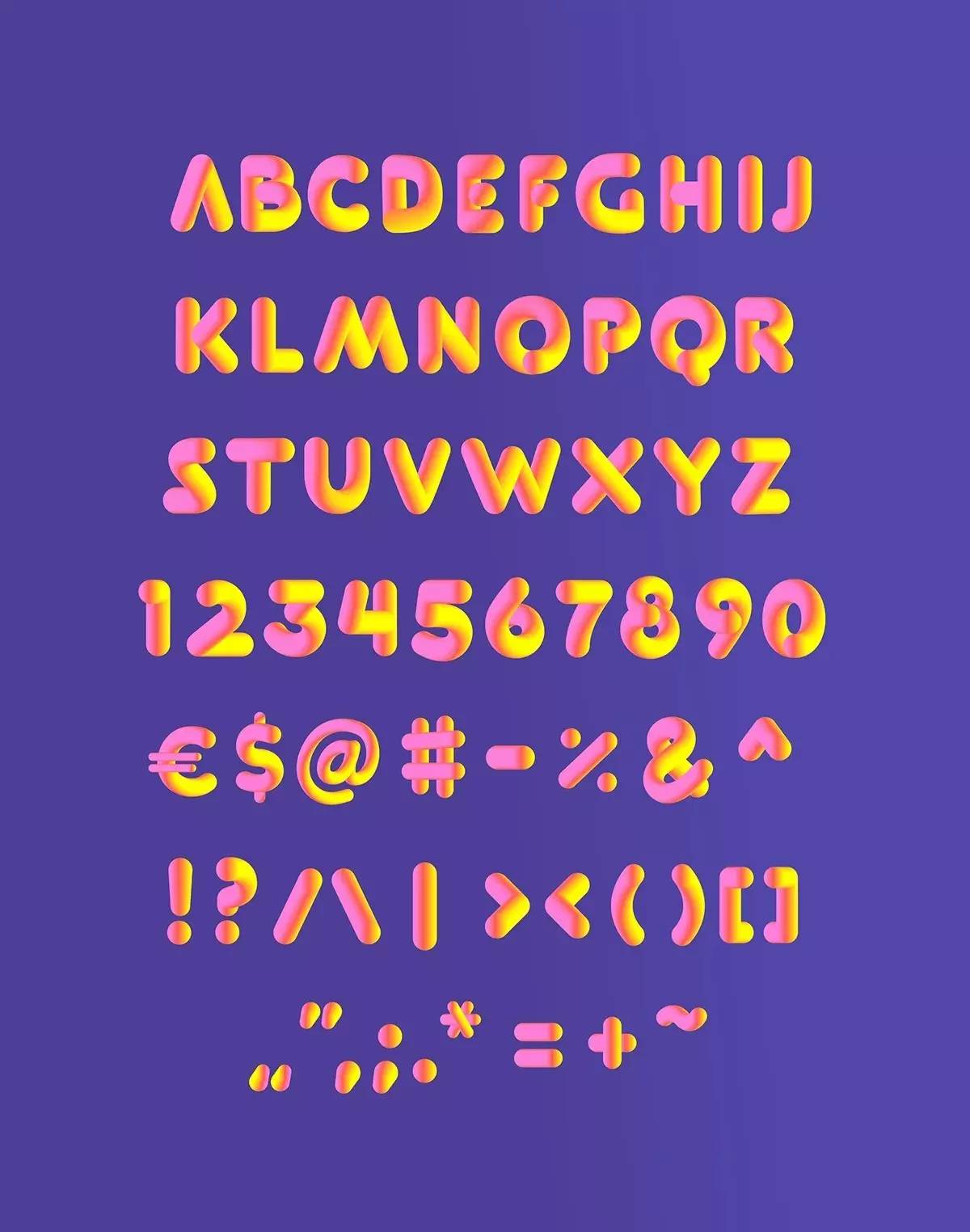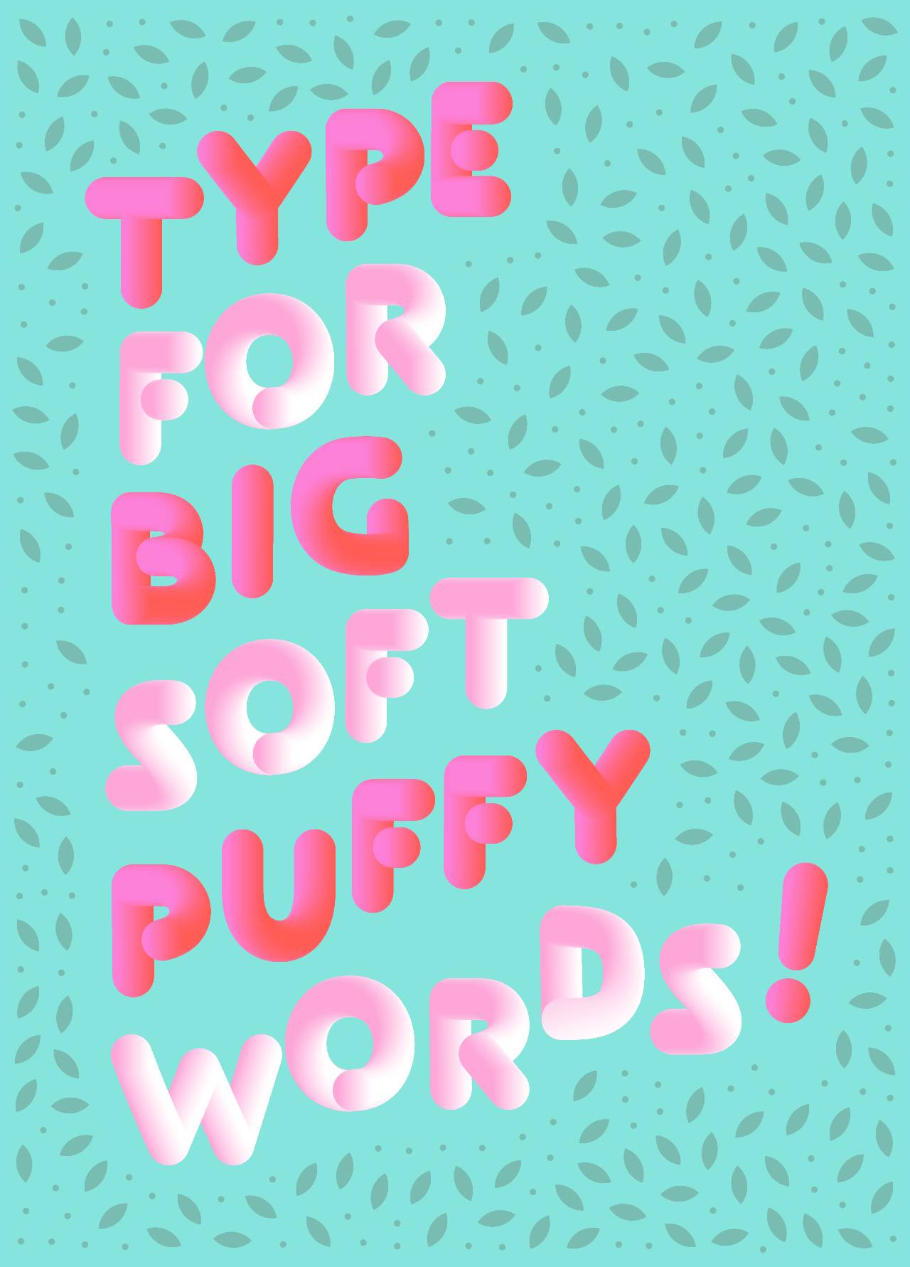 他们同时使用Illustrator混合工具和渐变,于是创造了这个松软软棉花糖的形态。 结果,一个伟大的,俏皮的,膨胀的形态诞生了,它可以很好地用在短语,标题或标题和数字设计上。