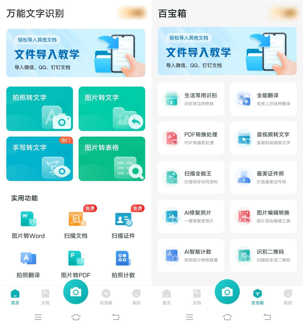 首先要分享的软件是我比较常用的一款软件——“万能文字识别”,这款软件支持拍照转文字、图片转文字、手写转文字等功能,还内置了一个有生活常用识别、PDF转换处理、音视频转文字、图片编辑转换等多种工具的【百宝箱】,可以满足我们日常多种需求。
