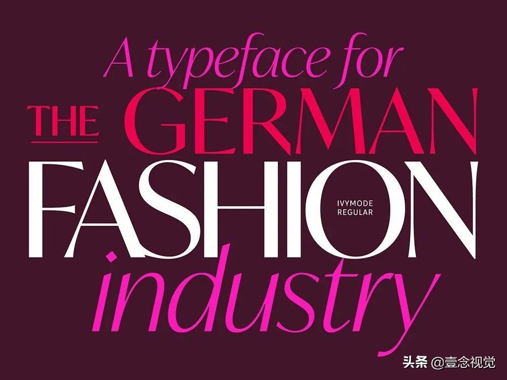 IvyMode是由设计师Jan Maack专门为杂志定制开发的一款无衬线字体,它一共拥有10种字体形式,具有高对比度和突出的笔划结尾,自然而然成为奢侈品牌们的首要选择。