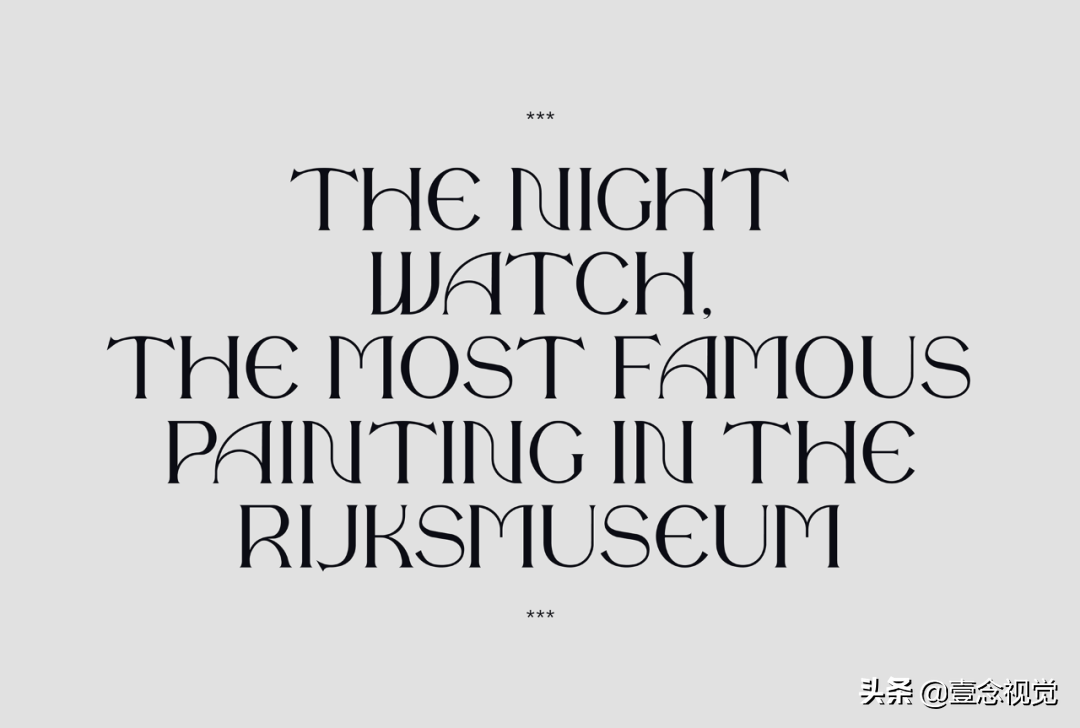 Noe Display是一款显示字体,它轻而易举地彰显出其大胆的笔触方式,以常规黑色粗体为主,字母之间可以通过楔形的衬线转折。不仅如此,该字体还为整体视觉赋予了戏剧性和冲击力的体验。