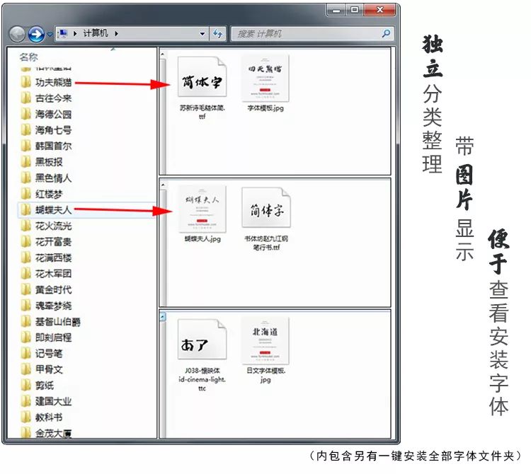 其中包含可商用字体270款,甲骨文、黄金时代、花木军团、古往今来、海角七号…… 各种文艺字体、手写字体、毛笔字体都有, 绝对能满足你的设计需求~