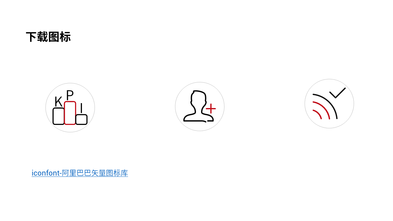 页面上半部分的内容有一点空,可以去网站上下载一些相关的小图标作为修饰,我用的阿里巴巴矢量图标库,想要的图标直接用关键词去网站上搜就可以了;下载的图标是SVG格式的,然后插入页面,取消组合以后对图标的局部进行更改颜色,参考如下:
