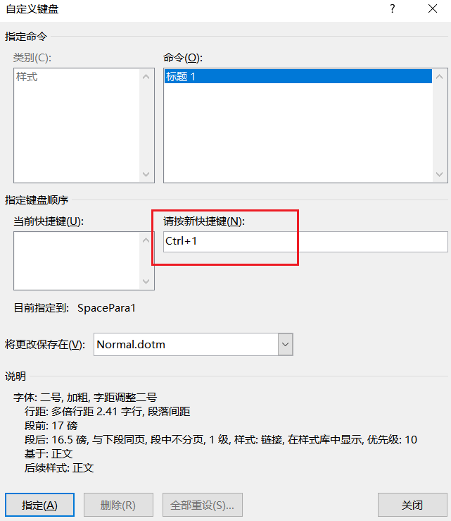 在快捷键面板,对该格式的快捷键进行设置,套用格式时就直接使用快捷键即可。