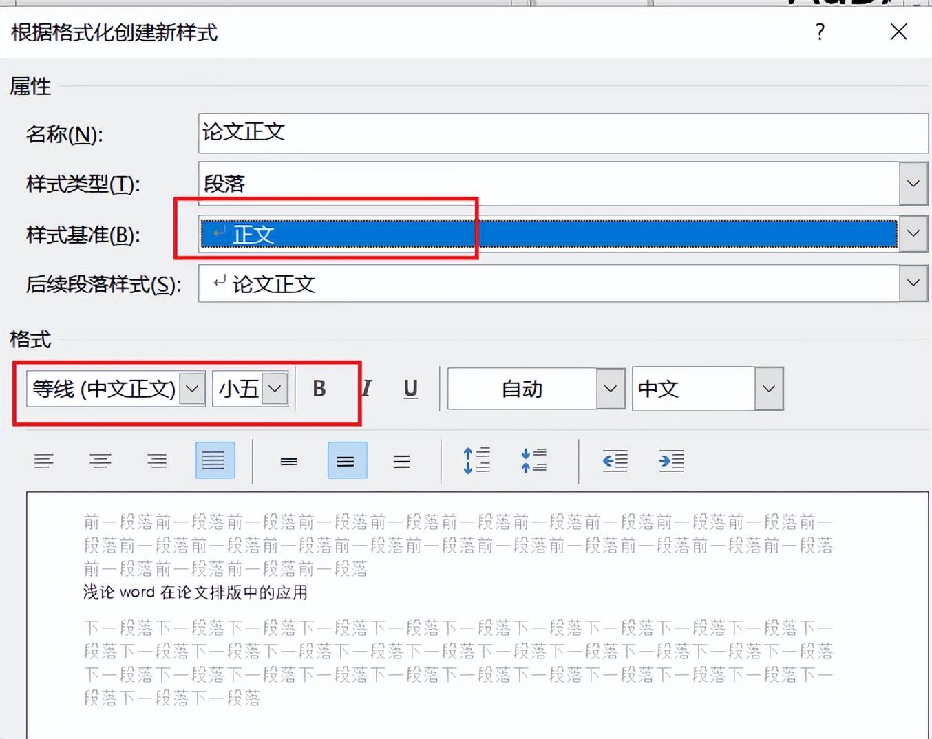 我们以创建【论文正文】样式为例。