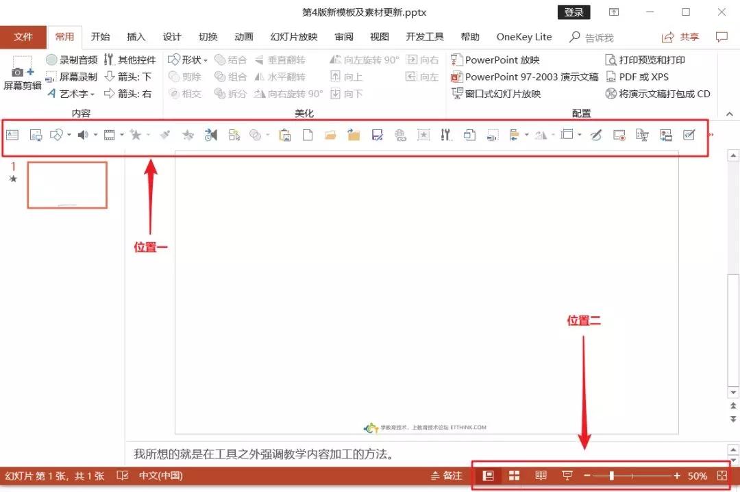打开 PPT,最重要的区块肯定是放置内容的幻灯片本身。所以第一步,我们得先知道「如何调整幻灯片大小?」。