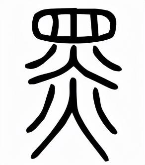 黑字小篆字形更加文字化,成为上中下结构,上为目字中间加一竖,中下谐为火即炎字。