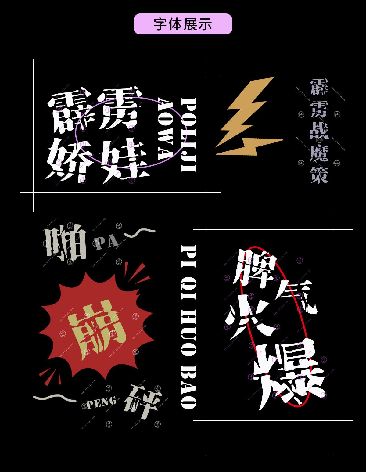 王冕《赠杨仲开画图引》云:“墨雨淋漓天地黑,茅山十日飞霹雳。”霹雳惊入字中来,欲往观之,自是磅礴大气,尽显盎然,为之震撼。今天,我们认识这款由南构字库推出的创意的印刷字体,是广告创作、海报设计的新款字——南构霹雳宋。