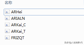 之后将复制好的5个文件逐一更改文件名称为:ARHei,ARIALN,ARKai_C,ARKai_T,FRIZQT;