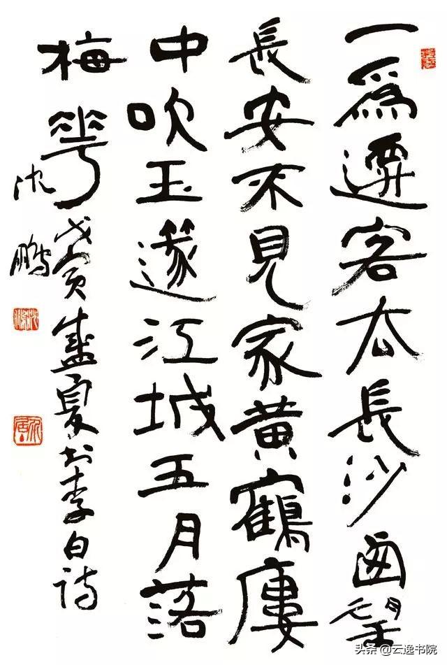 一、由于书写工具性能不同,笔法不同,墨色不同,会造成不同质感的线条效果。在平时教学之中一般要求浓墨(但浓而不滞)正锋,重按涩行,则笔实墨沉,线条圆浑刚劲,骨肉相称,“藏骨抱筋,含义包质”(“文”指形,“质”指神)线条力度大,质感强,因而会给人以浑厚含蓄,丰盈充实的感觉,如金文、魏碑、颜楷线条即是,而墨乏、墨淡、笔飘墨浮,墨不入纸,其线条或抛筋露骨,或肉丰肥涨,会给人轻薄笨弱之感,线条力度小,质感弱,质量感与落笔力量及用墨浓淡直接有关。有份量、有力度,即有质感,一般来说有质感的线条能唤起审美联想,所以选择一种特定形质的线条,去表现特定文字内容,加之巧妙的章法,就可能是一幅内容、形式相统一的佳作。例如浓重粗涩的细线,宜于表现“钢铁长城”的意境,柔软细韧的线条,宜于表现“细雨春风”的意境,枯燥凝涩的线条,宜于表现“寒林渐肃,虎啸猿啼”的意境,否则,难以创造出书法作品特殊的神采和韵味来,更不会酿造出浑朴或高逸或妍丽或霸悍的风格。总之,落笔着实用力,濡墨浓重充盈,行笔稳健劲涩,所造成的线条效果,无论粗壮或细柔,都会给人以明显的质量感觉。