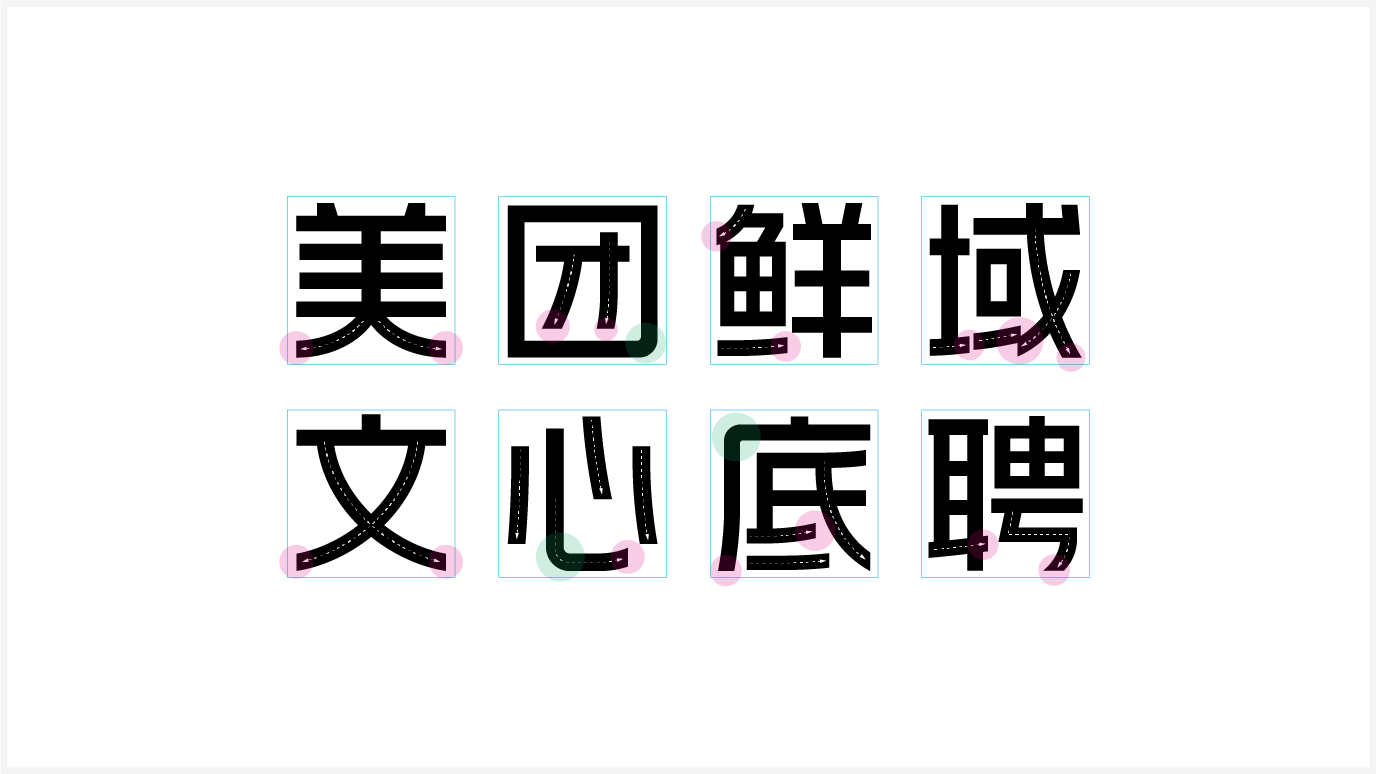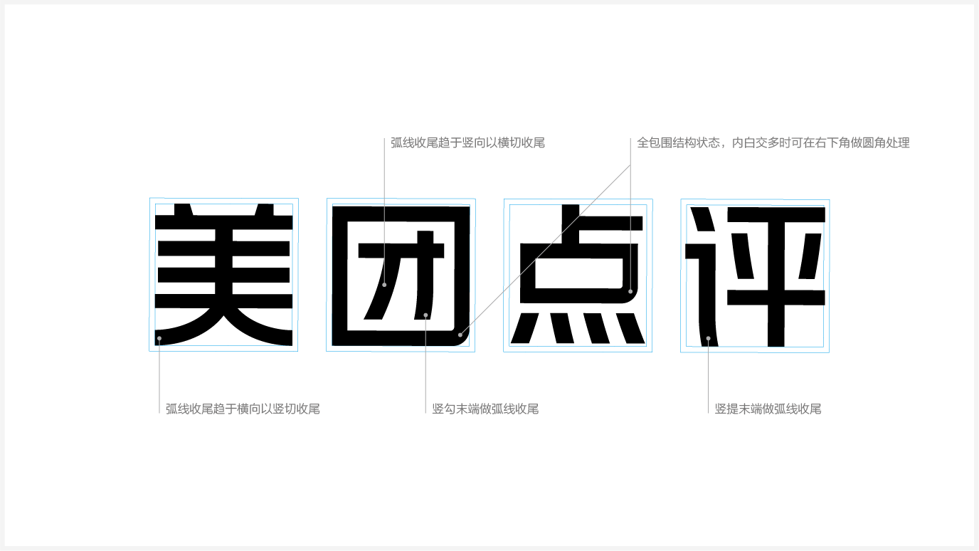 一款字体的设计,成果看似简单,而过程却极其考验设计师的设计功底,浓缩了设计师对文字美感的领悟,在反复琢磨和一笔一划细微的调整中让作品越来越鲜活富有灵气。以上就是关于美团品牌字体设计过程中的个人思考和阶段性总结,如果能起到抛砖引玉的效果,不胜荣幸,希望各位同侪不吝赐教。