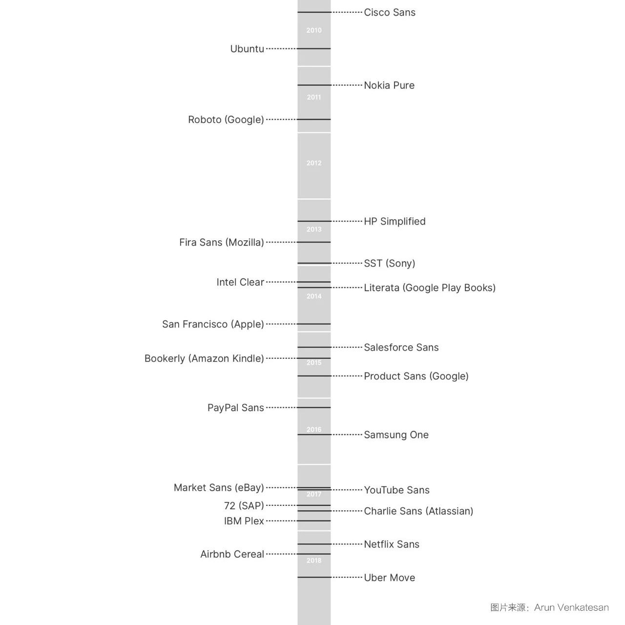 从上个世纪开始,多数企业都是通过支付版权费从字体公司获得可使用字体。即便后期排版、印刷技术发生改变,出现了越来越多的字体,也并没有太多企业定制自己的专属字体。设计品牌专属字体,在当时还是比较新的做法。进入互联网时代后有了上升趋势,部分科技公司开始推出专属的品牌字体。而随着时间的推移递增,字体的重要性也逐渐凸显。