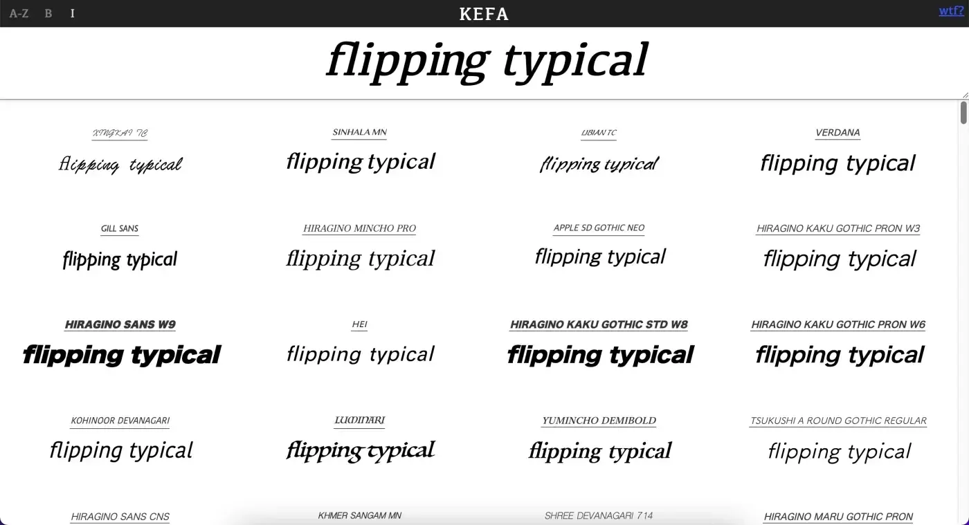 免费试用 :15 天Typeface Pro: 买断制包含 12 个月的更新,1 位用户 US$ 37.79 ,允许绑定多台 mac 设备。一次购买多位用户将获得更多折扣。如果你正在寻找一个用网页就可以你拥有的字体管理工具,那 flipping typical 会是你的最佳选择。