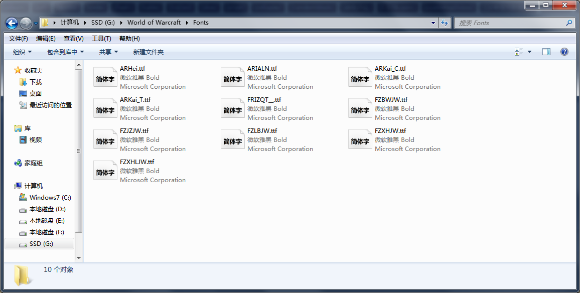 4 : 把该字体文件复制9份分别重命名成魔兽世界文件夹里Fonts文件夹的9个文件的名字