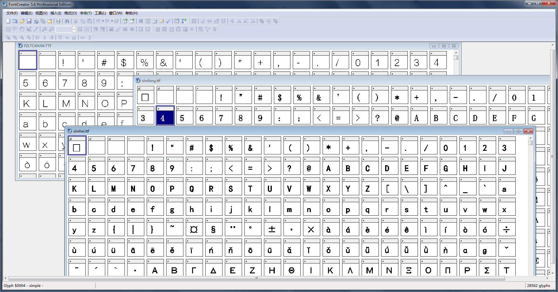 3 :假设我所打开的字体是宋体黑体楷体(其实我是转眼就忘了我打开的是什么)假设我想游戏内主字体是宋体,英文是黑体,数字是楷体。那么我选中黑体中的英文字母(可一次性多选),复制粘贴到原来宋体英文字母对应的位置,我再选中楷体中的数字复制粘贴到原来宋体数字对应的位置。然后关掉黑体楷体文件保存该字体文件。