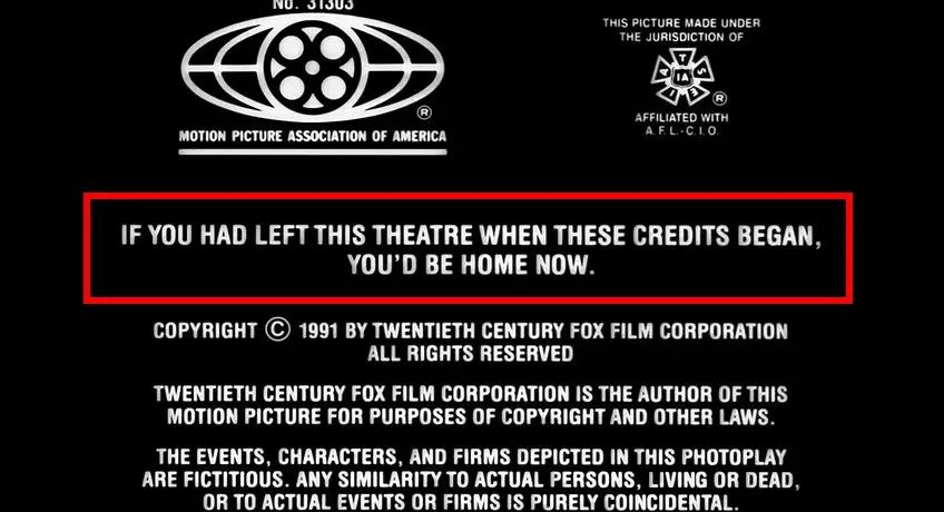 或许相比观众,电影人自己早就对此坦然处之了,在经典喜剧《反斗神鹰》(1991)的片尾字幕里,创作者自己也吐槽起来——