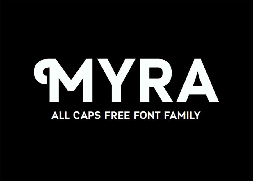 Myra 是全新的全大写、当代无衬线无字体,由乌克兰设计师 Sergiy Tkachenko 设计。Myra 是一种“装饰风格”感觉的字体,以经典的无衬线曲线呈现,使字体既适用于复古风格设计又适用于现代风格设计。该字体非常适合任何类型的图形设计,如海报,LOGO,网页,印刷品,动画,T恤等。Myra可用于你的个人项目当中,如果要在商业项目当中使用,则需要购买相应的授权。