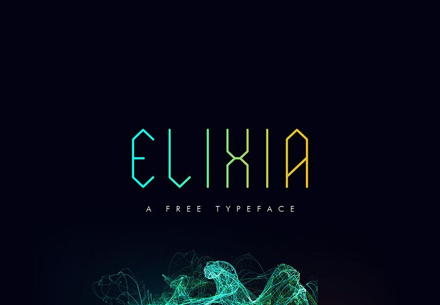 Elixia 是由马尼拉艺术家和设计师 Kimmy Lee 设计的,这是一款受到六边形网格系统启发的略微浓缩的字体。该字体具有强烈的垂直强调、坚实的几何感。Elixia 是一种单字重字体,由200个字符和字形组成,包括大写、小写、数字、扩展字符、重音和风格替代。你可以免费下载它并在你的个人项目当中使用,如果要在商业项目当中使用,则需要购买相应的授权。