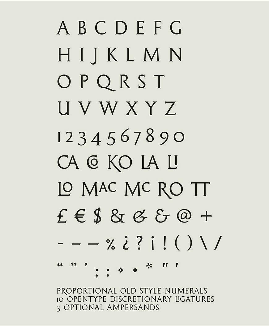 Cenotaph Titling 是一款以 Eric Gill 的铭文为灵感的雕刻字体,由塔林的平面设计师和文学家 Lewis McGuffie 设计。它是一种开源字体,包含10个可自由选择的用于样式和实际间距的连字,以及3个备用的&符号和比例旧式数字。Cenotaph Titling 免费提供给个人使用或是用于商业用途当中。