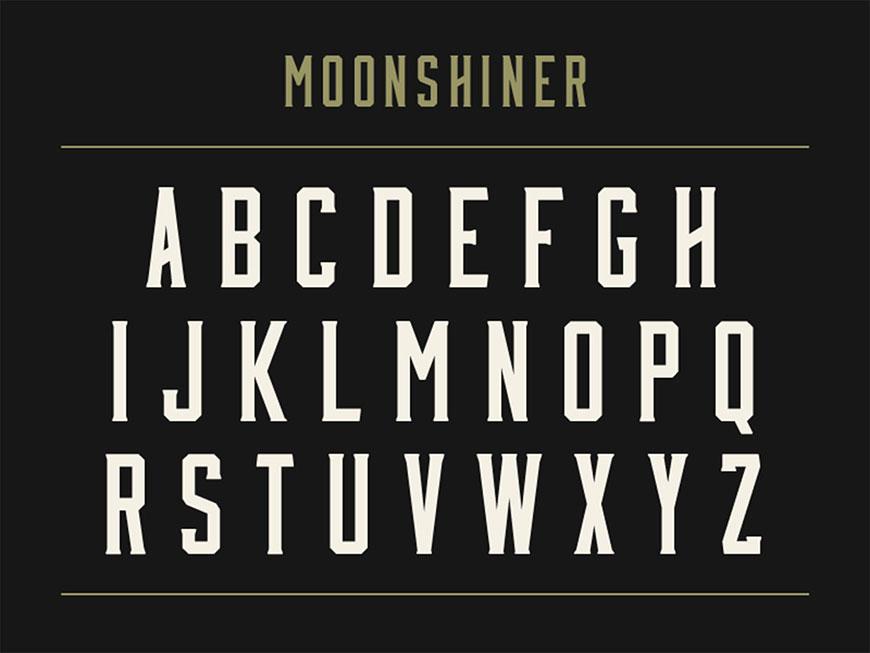 Moonshiner 是一款浓缩设计,灵感来自 Mattox Shuler 设计的复古威士忌瓶标签。它是一个包含多种不同样式的大写字体,包括带有替换字符的常规和倾斜样式。该字体是免费下载的并且非常适合用于 LOGO 和包装。该字体只可用于个人项目当中,如果要在商业项目当中使用,则需要购买相应的授权。