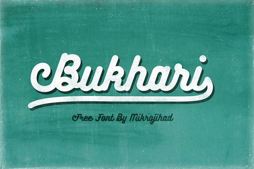 Bukhart Script 是一种免费的,粗体单笔书法字体,由印度尼西亚的 Mikrojihad 设计。这种字体可用于各种设计项目,其特别适用于 LOGO、海报、标牌、徽章、名片、T恤等。Bukhari Script 是从粗线条中汲取灵感并通过鼠标创建出来的。你可以将它使用在你的个人项目或是商业项目当中。