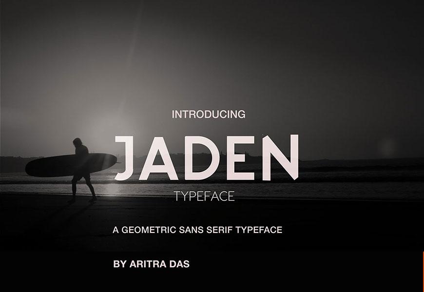 Jaden 是一款免费的几何无衬线字体,由加尔各答的视觉设计师 Aritra Das 设计。Jaden非常适合标题,海报,LOGO,信笺,网页排版,摄影,印刷等。你可以免费下载并使用它,但是如果是用于商业项目,则必须购买许可才可以。