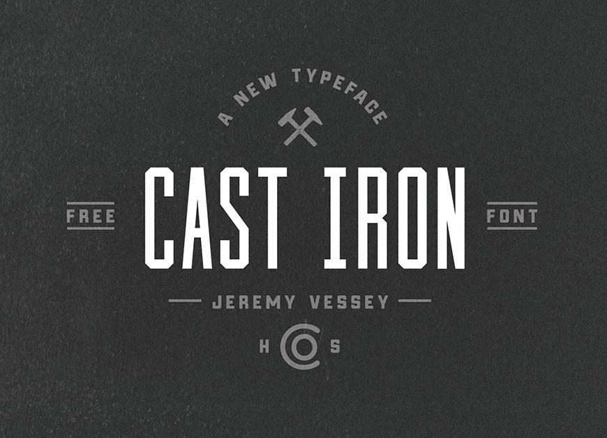 Cast Iron 是一款精炼且棱角分明的全大写字体,很适合 LOGO、品牌、标题和服饰装饰使用。Cast Iron 在创造一种具有坚实工业风格的大胆排版,设计者是加拿大设计师 Jeremy Vessey。该字体可以用于商业用途当中。