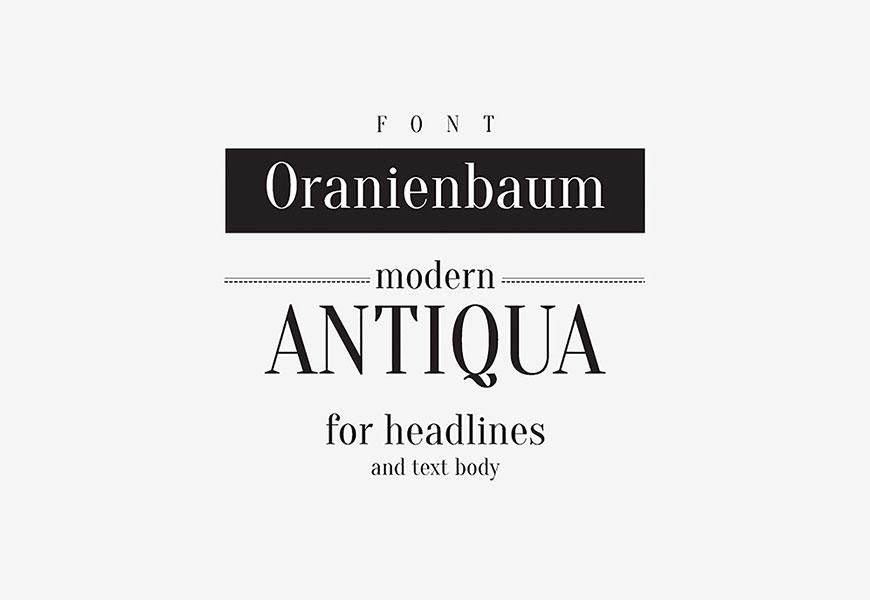 Oranienbaum 是一种现代的 Antiqua 免费下载使用的字体,由 TypeType 铸造厂和 Oleg Pospelov 设计。此字体基于 Bodoni 等经典 Antiqua 字体的架构。Oranienbaum 非常适合用于标题和正文。