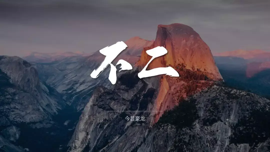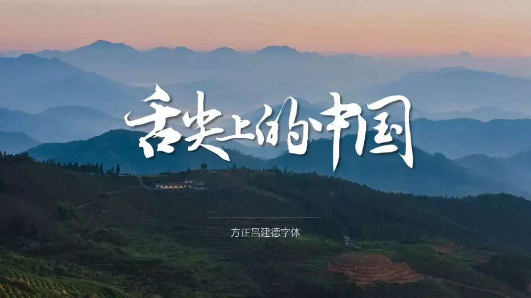 在字体上,它选择了书法毛笔字体,搭配山水国画,气韵生动,气势磅礴。