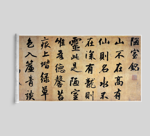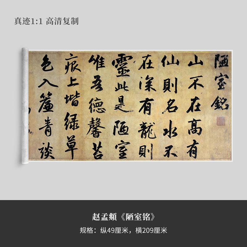 赵子昂的这件《陋室铭》如今藏于广东省博物馆,是其“镇馆之宝”。如今我们将这件作品按照原作大小进行1:1复制,还原出了跟原作一模一样的作品。