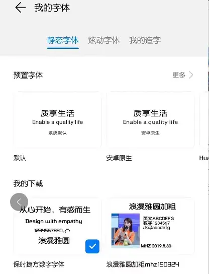 主题App-我的-字体-选择保时捷方数字字体-应用。
