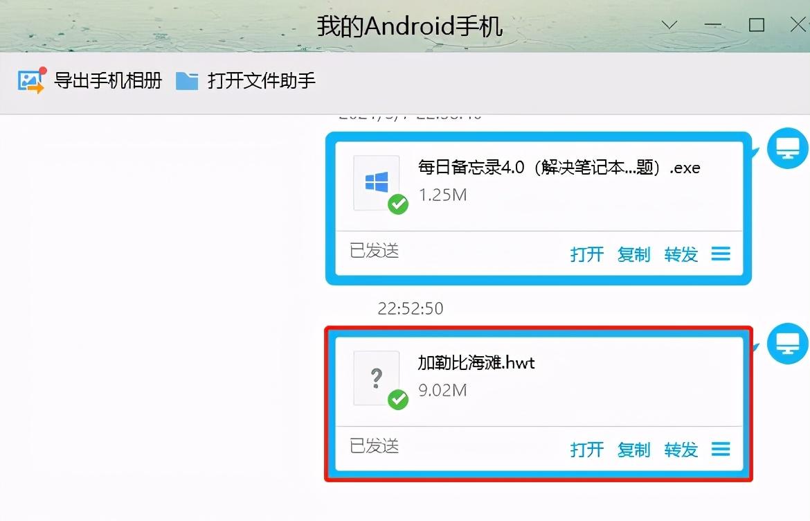 2、将下载好的加勒比海滩主题文件通过电脑端QQ“我的Android手机”传到手机上。ps:电脑端和手机传文件qq比微信方便多了。