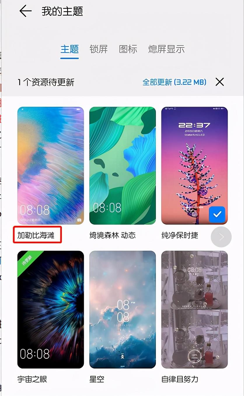 7、打开主题app-我的-主题-就能发现多出一个加勒比海滩主题了,选择即可应用了。