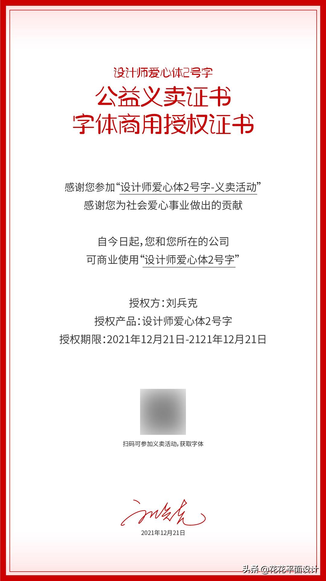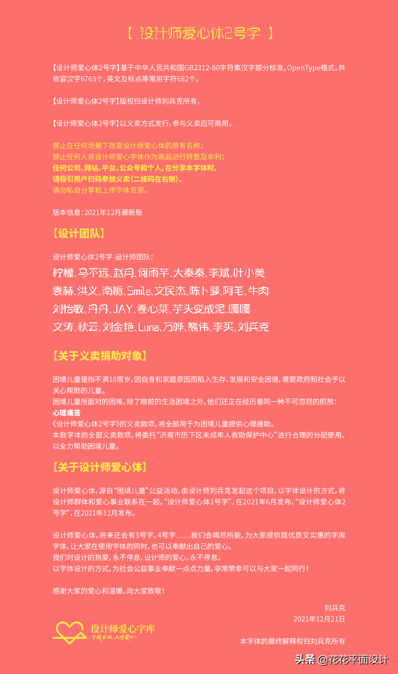 这是字体设计师刘兵克团队在发布第一款免费公益字体——设计师爱心体1号字后,发布的第二款公益字体。