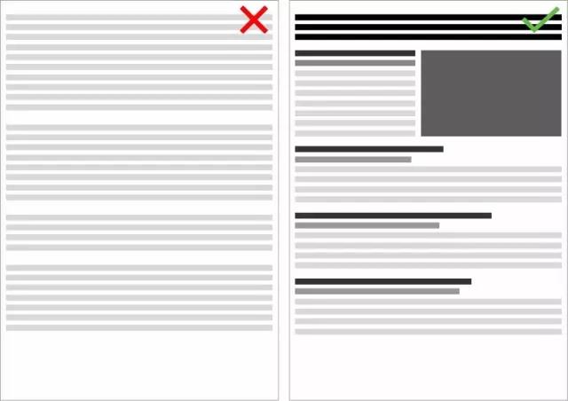 长段落与用户意图无关的首行标题、标题或副标题下的内容那如何运用用户浏览网页的这些既定习惯去更好的设计呢,一般我们可以采用如下几种设计策略: