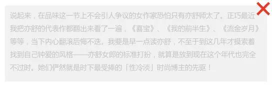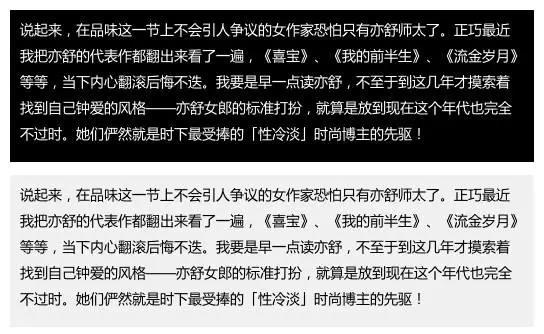 豆瓣正文使用的是12号字,百度知道正文使用的是14号字。从视觉上看,豆瓣的整体字号偏小,虽然用户阅读起来会容易产生疲劳,但小号字传递给人的感受很精致,符合豆瓣用户群体的文艺气息,所以它的的目标用户普遍都还是接受的。如果将豆瓣正文字号换成14号,如右图,就会显得有些粗糙,不够精致细腻了。不同产品面对不同的用户群体,百度知道的用户群体覆盖全年龄段,需要以阅读的清晰度为主要考虑点。