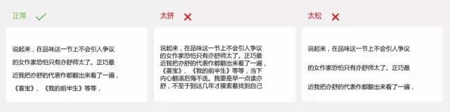 过窄的行距,容易出现跳行,而过宽的行距会让文字失去延续性,影响阅读。