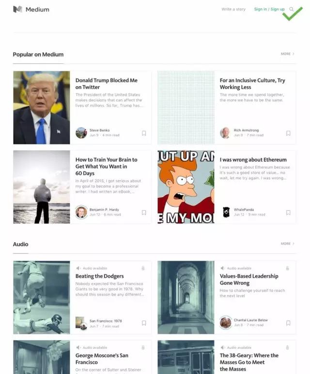 合理的内容布局,以及易于阅读的字间距,段间距,页边距,能够让用户更舒适的阅读你的网页正文,如上图,Medium的网页可以很轻松的指引用户去寻找他想找的内容,而另一张图的网页元素过多,用户的注意力很容易分散,太多东西挤在一起,用户会不知所措并忽略大部分内容。